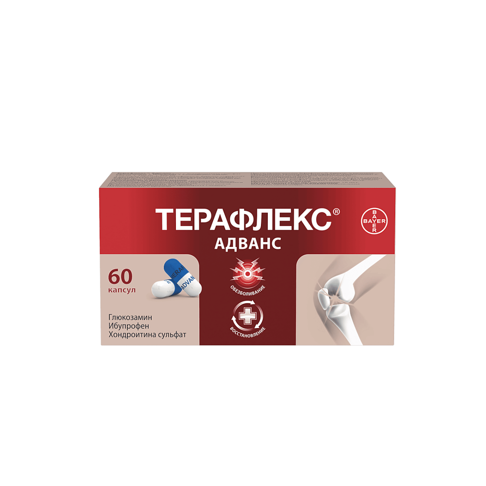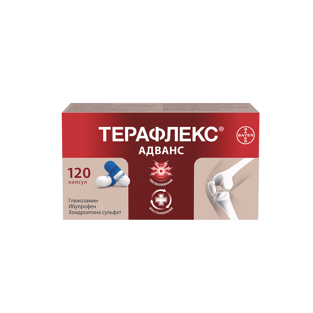 После применения Терафлекс® Адванс и лечения обострения рекомендуется перейти на длительное применение препарата Терафлекс® (Глюкозамин + Хондроитина сульфат) для дальнейшего восстановления хрящевой ткани суставов.