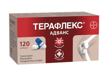 Терафлекс® Адванс представляет собой комбинированный препарат, содержащий в качестве активных компонентов хондроитина сульфат, глюкозамина сульфат и ибупрофен. Препарат относится к группе «противовоспалительные и противоревматические препараты; нестероидные противовоспалительные и противоревматические препараты; производные пропионовой кислоты». Хондроитина сульфат участвует в построении и восстановлении хрящевой ткани, защищает ее от разрушения и улучшает подвижность суставов.